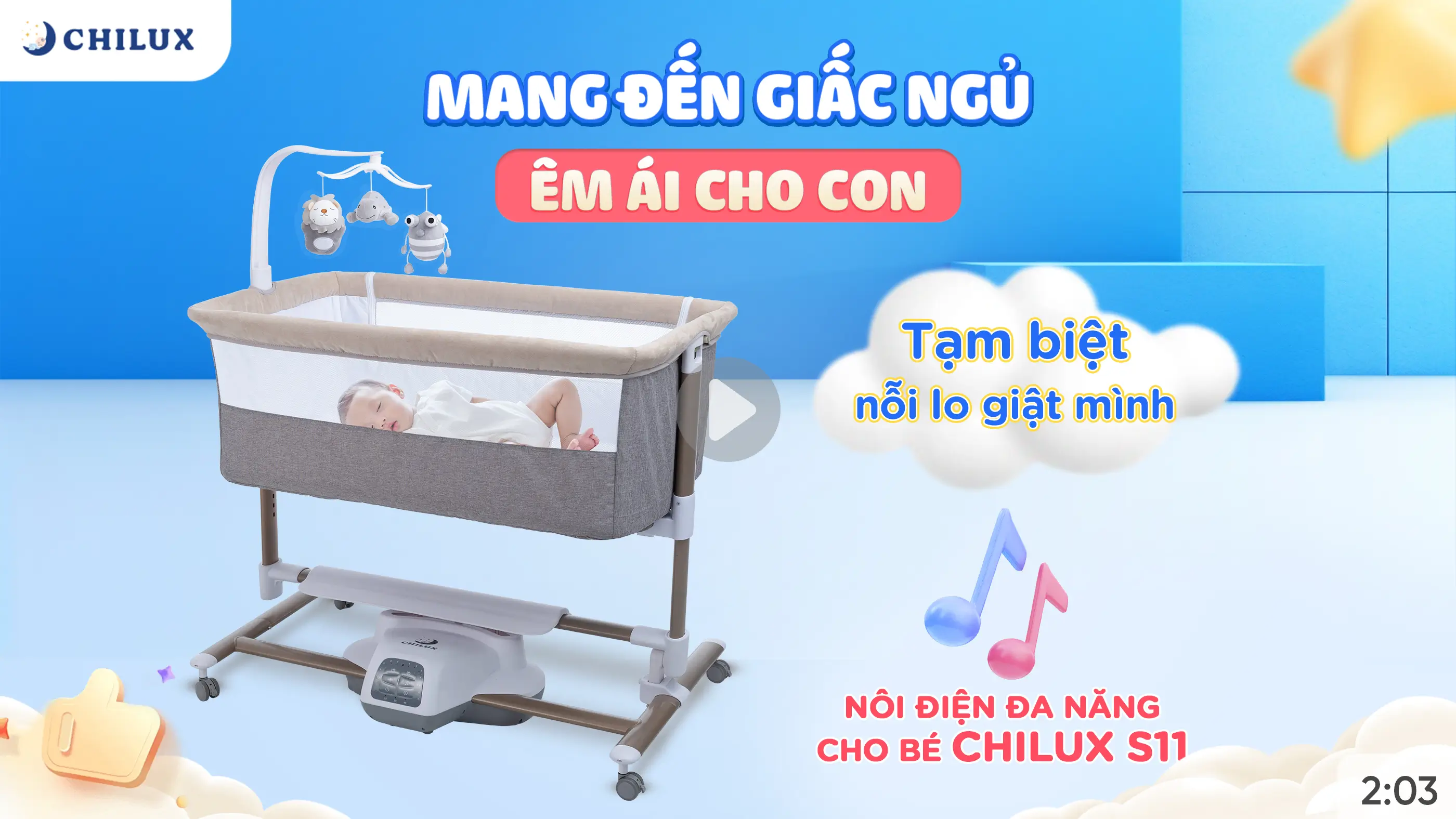 Đảm bảo giấc ngủ ngon cho con với nôi điện đa năng Chilux