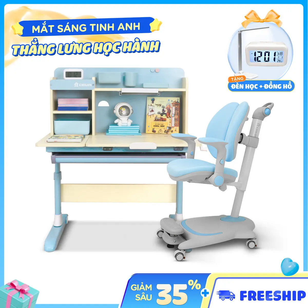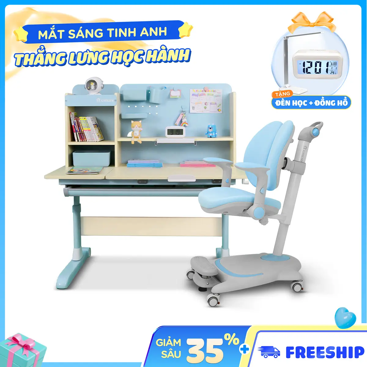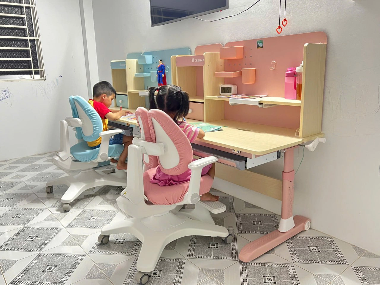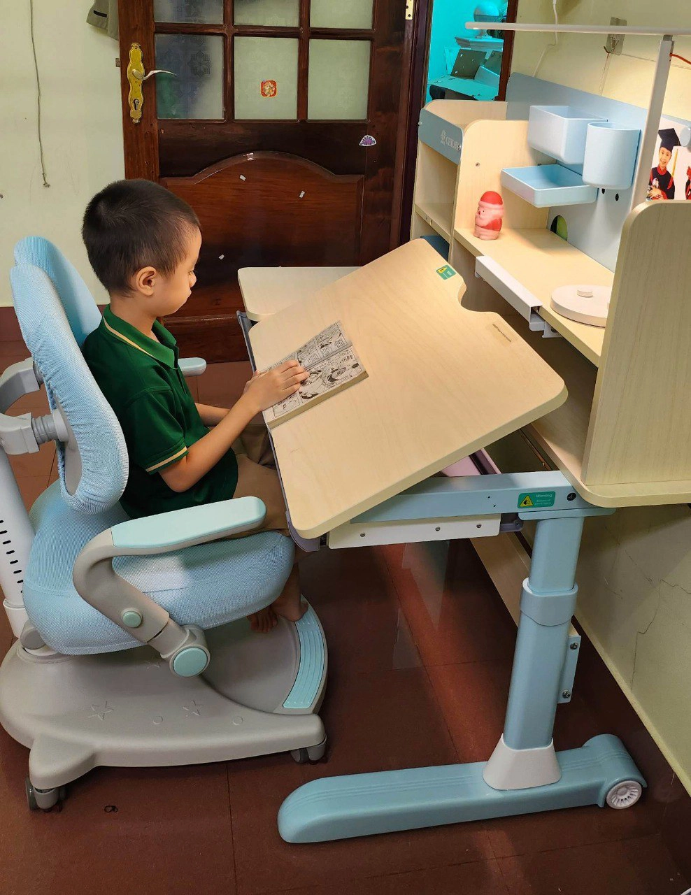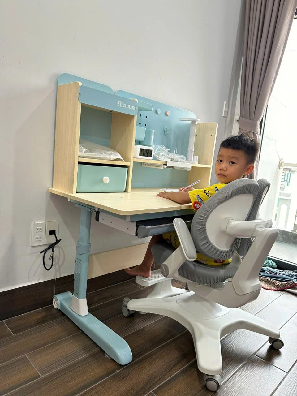 nhóc nhà e tới tuổi đi học nên tìm cái bàn tốt tốt. nhớ tới a họ nó dùng bàn của chilux có chống gù chông cận, êm. nên e tranh thủ ghé qua showroom chốt luôn. mua ngay đợt giảm giá, còn được freeship.