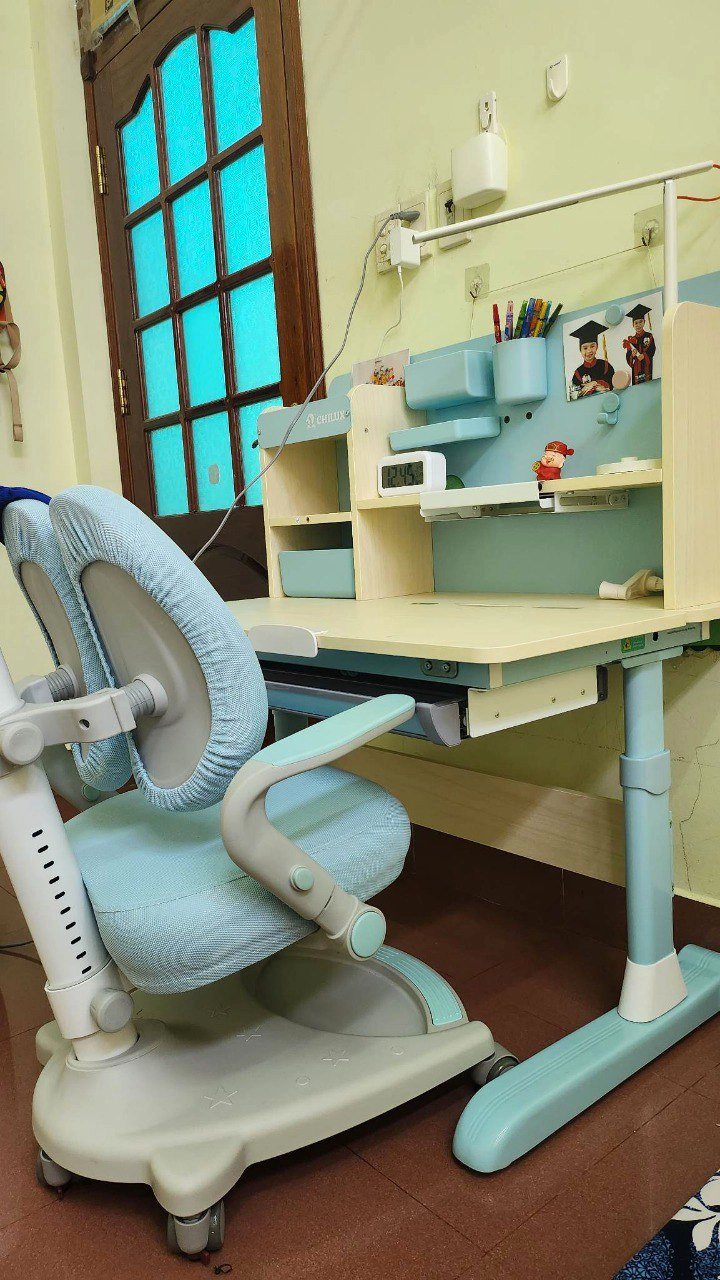 tìm hiểu nhiều nơi rồi vẫn thích mẫu này, màu xinh, bànchỉnh được cao thấp phù hợp dáng con, nên e mua luôn 1 bộ cho ngồi đúng tư thế