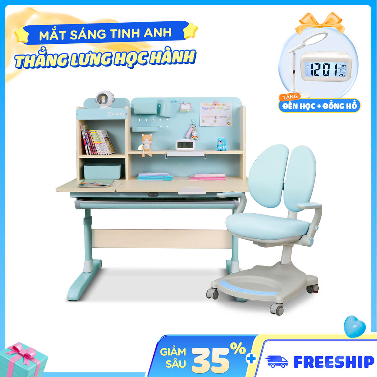 BÀN HỌC THÔNG MINH CHILUX SMART D (MÀU XANH – DÀI 1M2 + GHẾ G19)