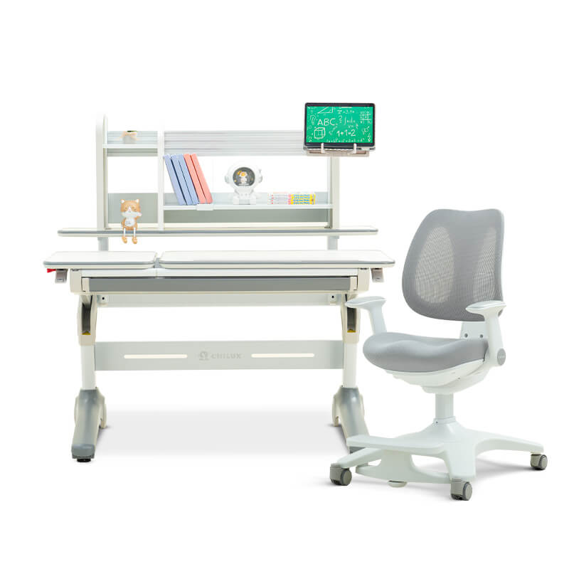 BÀN HỌC THÔNG MINH NÂNG HẠ BẰNG PISTON CHILUX SMART E – MÀU XÁM + GHẾ A11