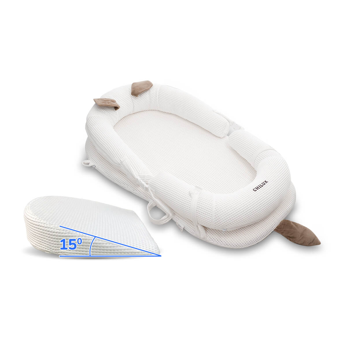 Đệm ngủ chống trào ngược mèo trắng Chilux (Đệm + Đệm kê chống trào)