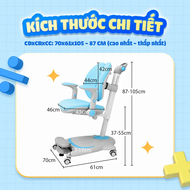 mấy đứa cháu mk ngồi ghế này, ngồi học lưng thẳng băng nên mk cũng qua showroom trải nghiệm, ok. chốt đơn luôn. màu ghế dễ thw, chắc chắn, nệm mềm, bánh xe mượt, tăng giảm cao thấp dễ.