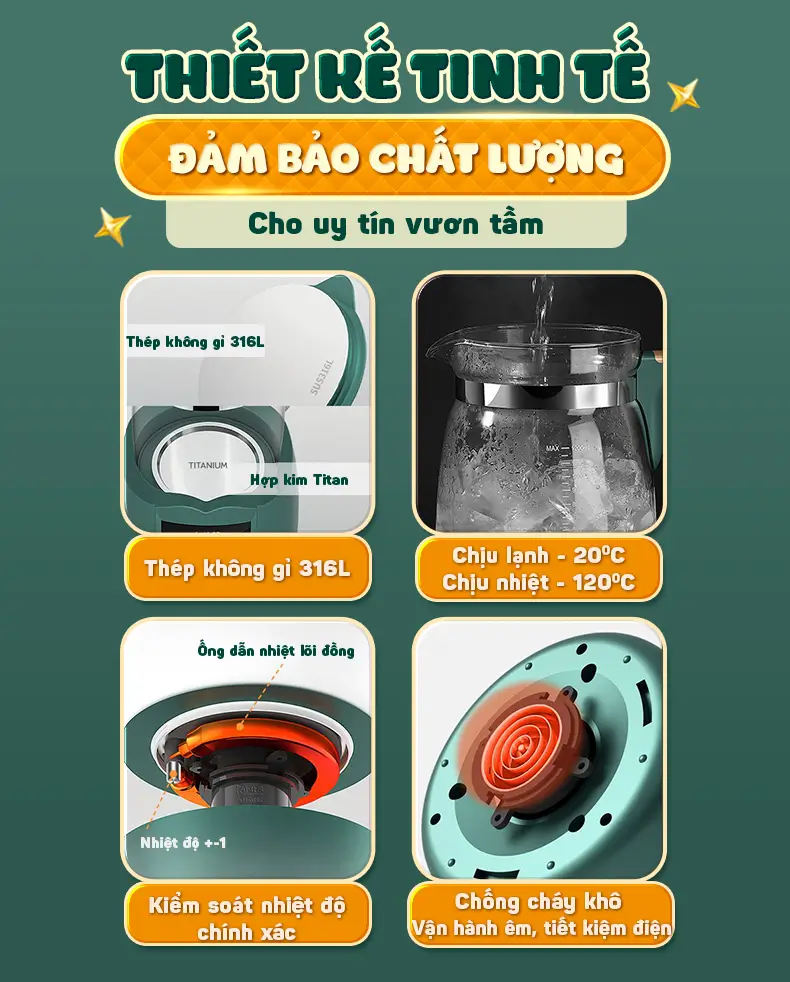 đun sôi 100°c và giữ ấm 50°c ko?