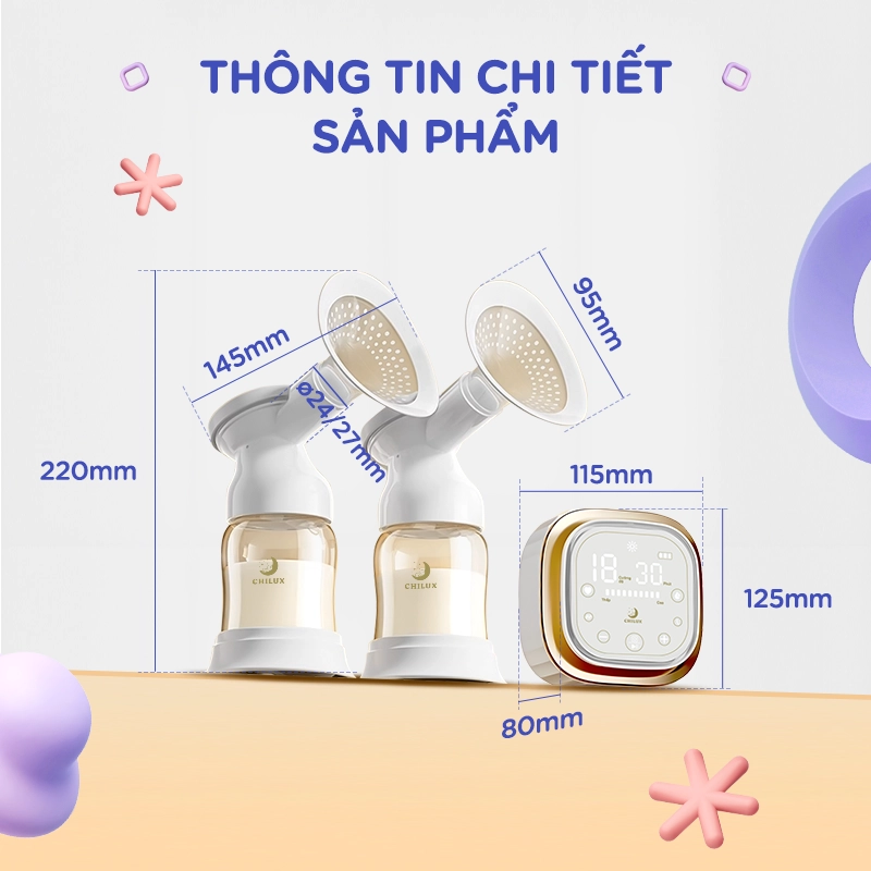 - Hiển thị dải ô màu sắc dễ kiểm soát thời gian hút sữa