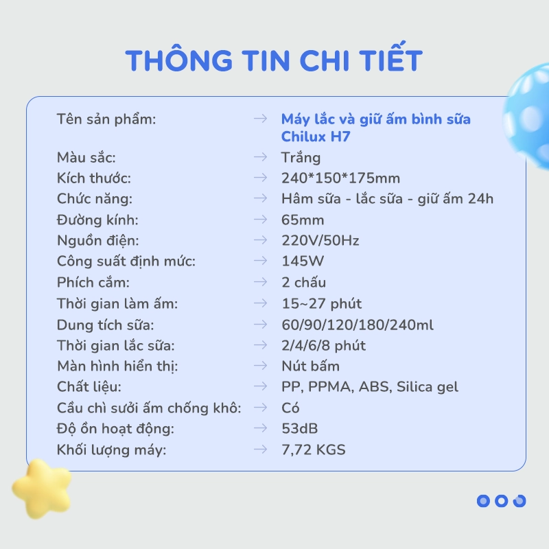 MÁY LẮC VÀ GIỮ ẤM BÌNH SỮA CHILUX H7