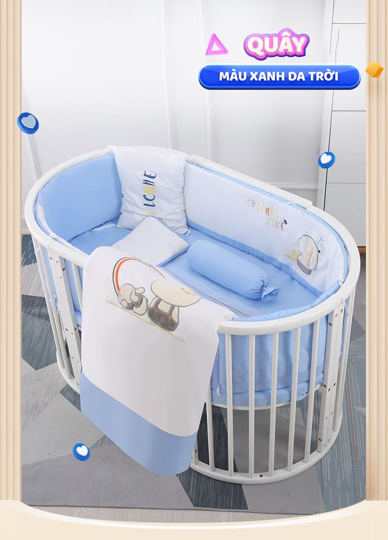 @kiều trân: Dạ Chilux chào chị ạ. Dạ sản phẩm nôi tròn được làm từ chất liệu gỗ thông và sơn cao cấp. Có nhiều tính năng nổi bât như : Lắp thành bàn tròn , giường tròn , giường hình cung , bàn + ghế nhỏ , bàn lớn ,...Chị có thể liên hệ hotline để nhân viên em tư vấn kỹ hơn chị nha