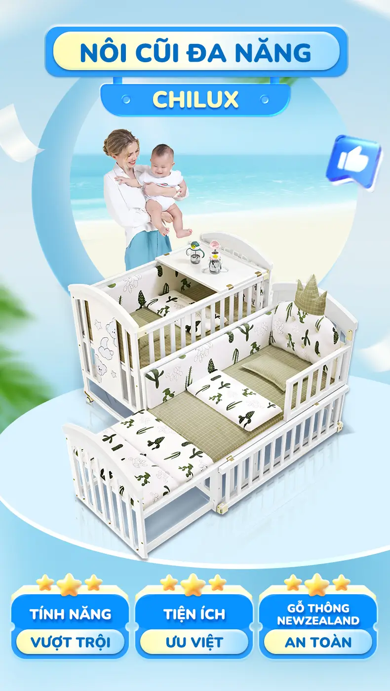 @Hiếu Huỳnh: Dạ Chilux chào anh ạ ! Dạ cũi Chilux được làm từ gỗ thông New Zealand , gỗ mịn và an toàn cho bé anh nha. Dạ nôi có thể chịu được tải trọng 70kg. Rất chắc chắn ạ